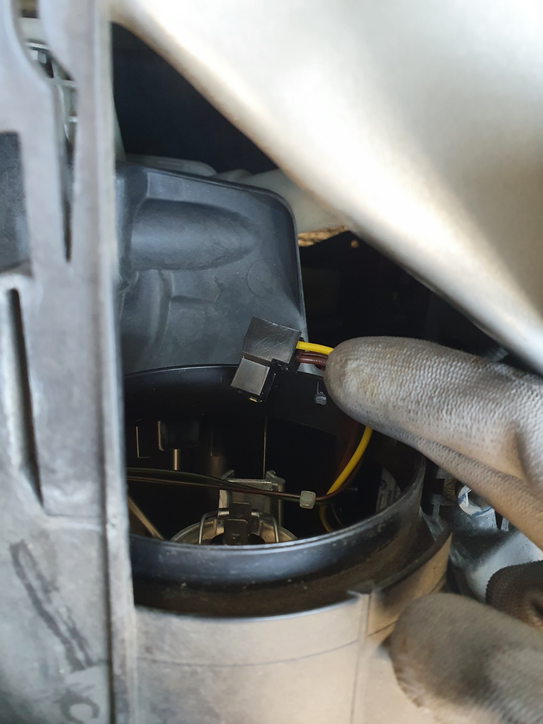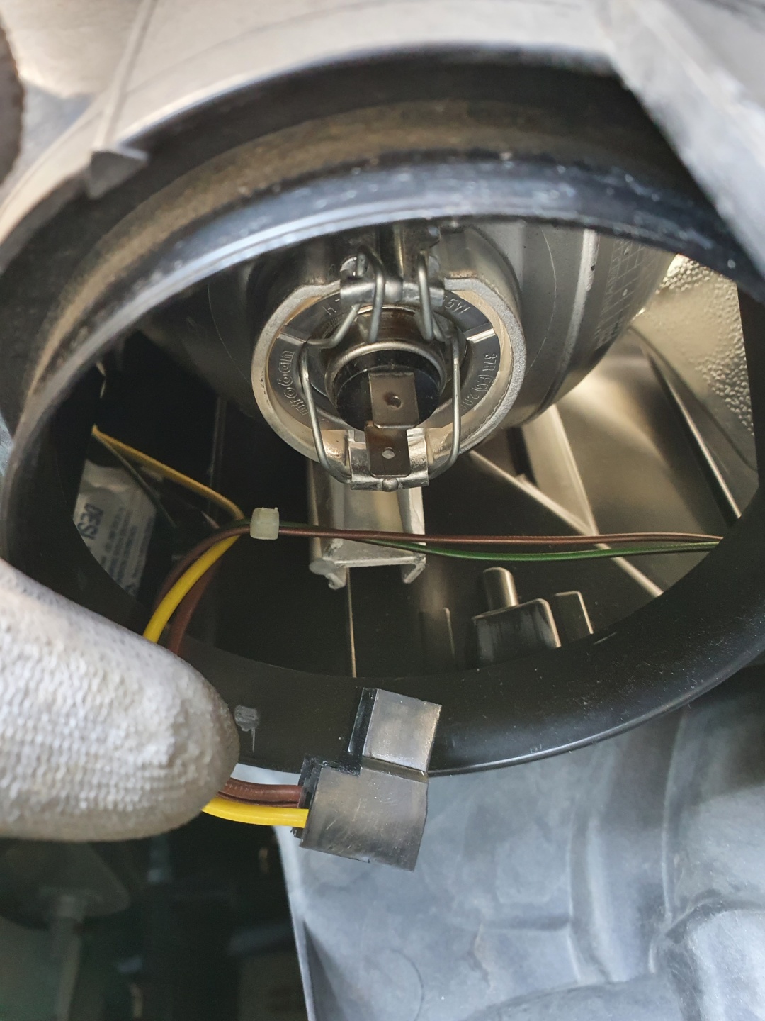 5. 라이트를 살짝 탈거한 후 교체하고자 하는 전조등 뒷면을 보면 아래와 같이 EPDM패드가 있습니다.